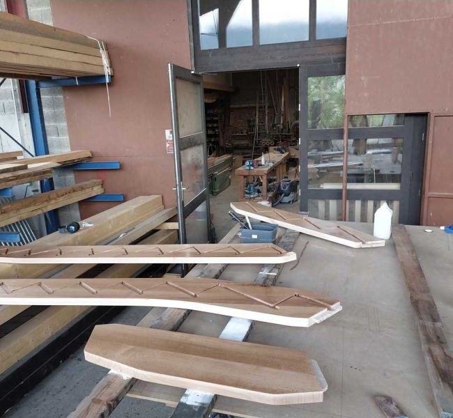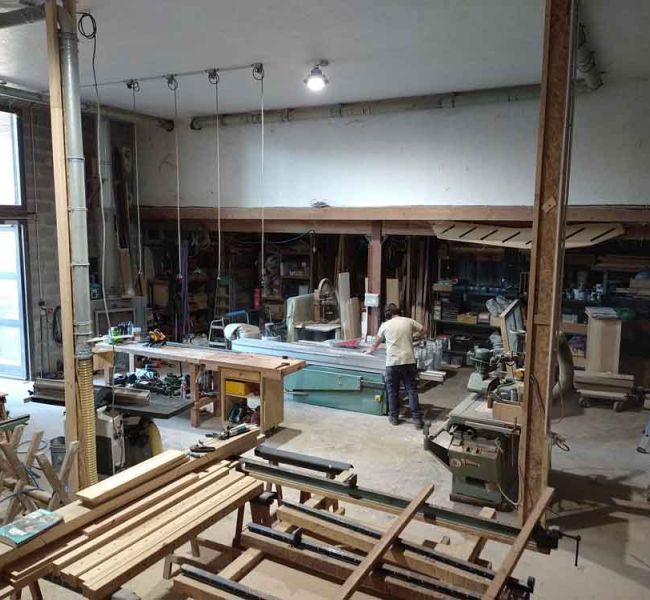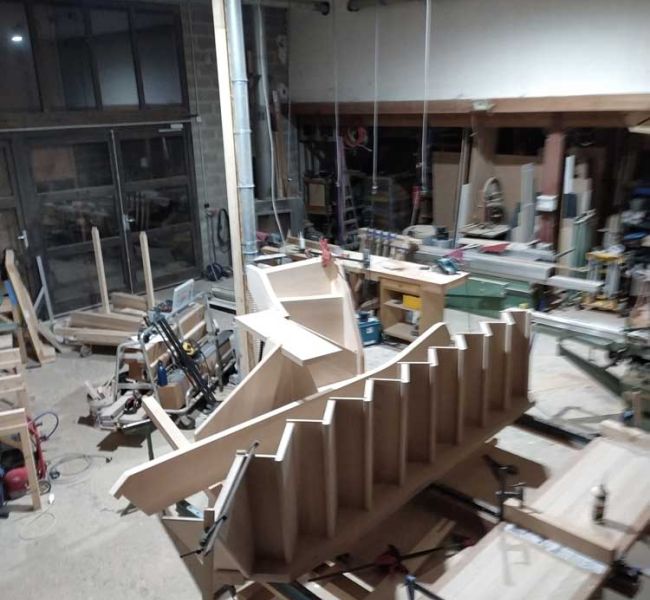 Grâce à notre atelier de fabrication, nous pouvons réaliser vos projets en bois (escaliers, balcons, volets et portes...).